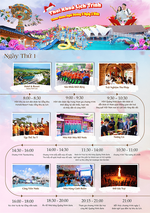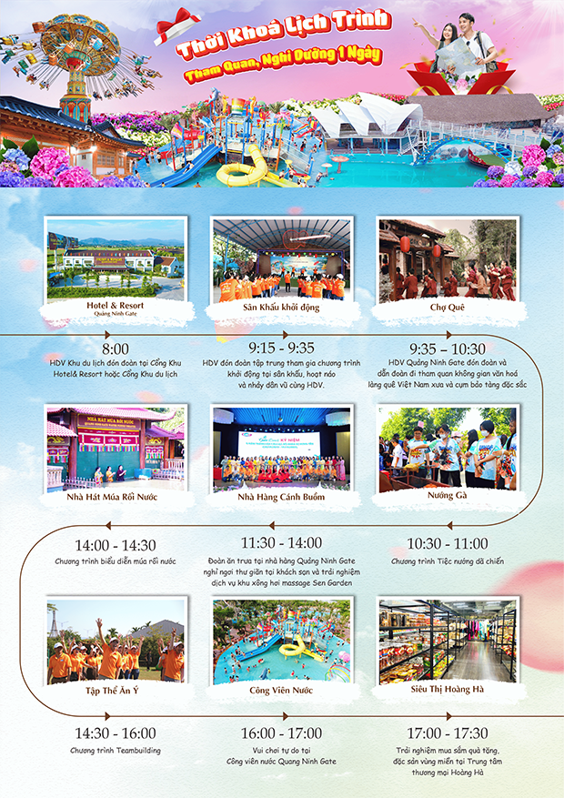 Combo 1 ngày tại Khu du lịch Quảng Ninh Gate sau đây sẽ là giải pháp tối ưu thời gian và chi phí cho những doanh nghiệp vừa và nhỏ. Cùng tham khảo nhé!
